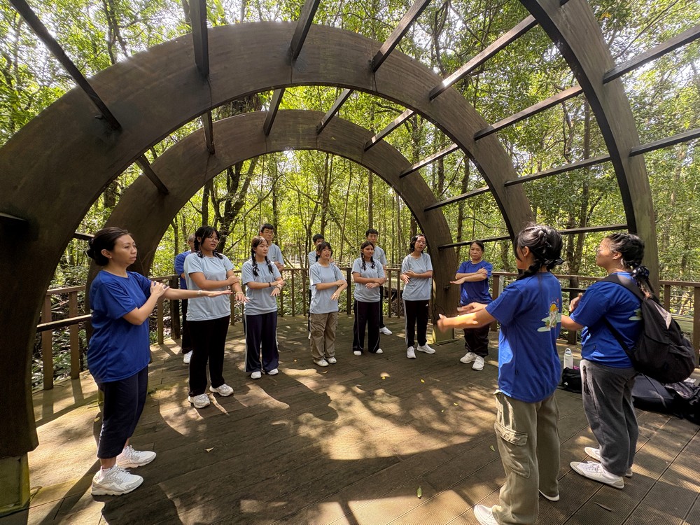 Before setting off, each group received a task card outlining their mission: to complete a series of challenges and solve intriguing puzzles. Besides testing their knowledge, their observational skills were also crucial. One task required them to photograph specific native animals of Kukup Island. As they engaged in their mission, the Tzu Shaos keenly observed the unique ecological landscape of the mangroves, seizing every opportunity to capture the target animals. Following the winding boardwalk through the mangroves, they embarked on an immersive journey of close-up exploration into nature’s wonder.