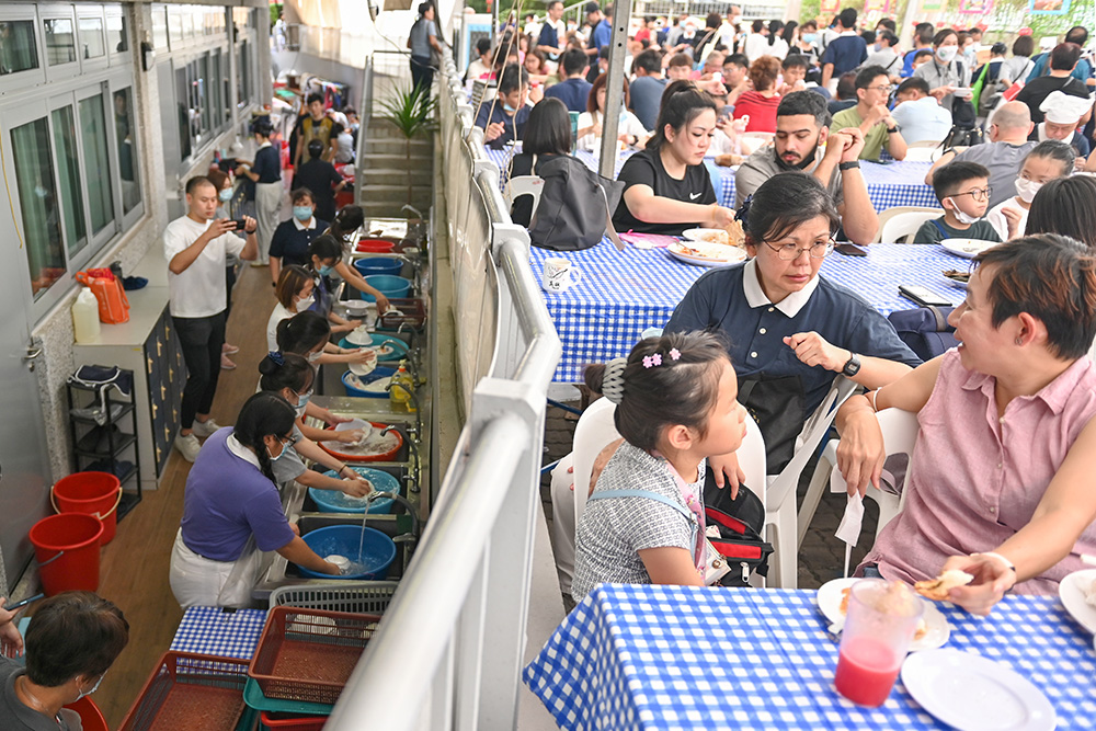 弥漫着诱人的美食香味,细数义卖会的美食,有新膳汉堡、越式面包、沙爹米粉、红烧面、叻沙、擂茶、粽子、卤味等。(摄/ 王英杰)